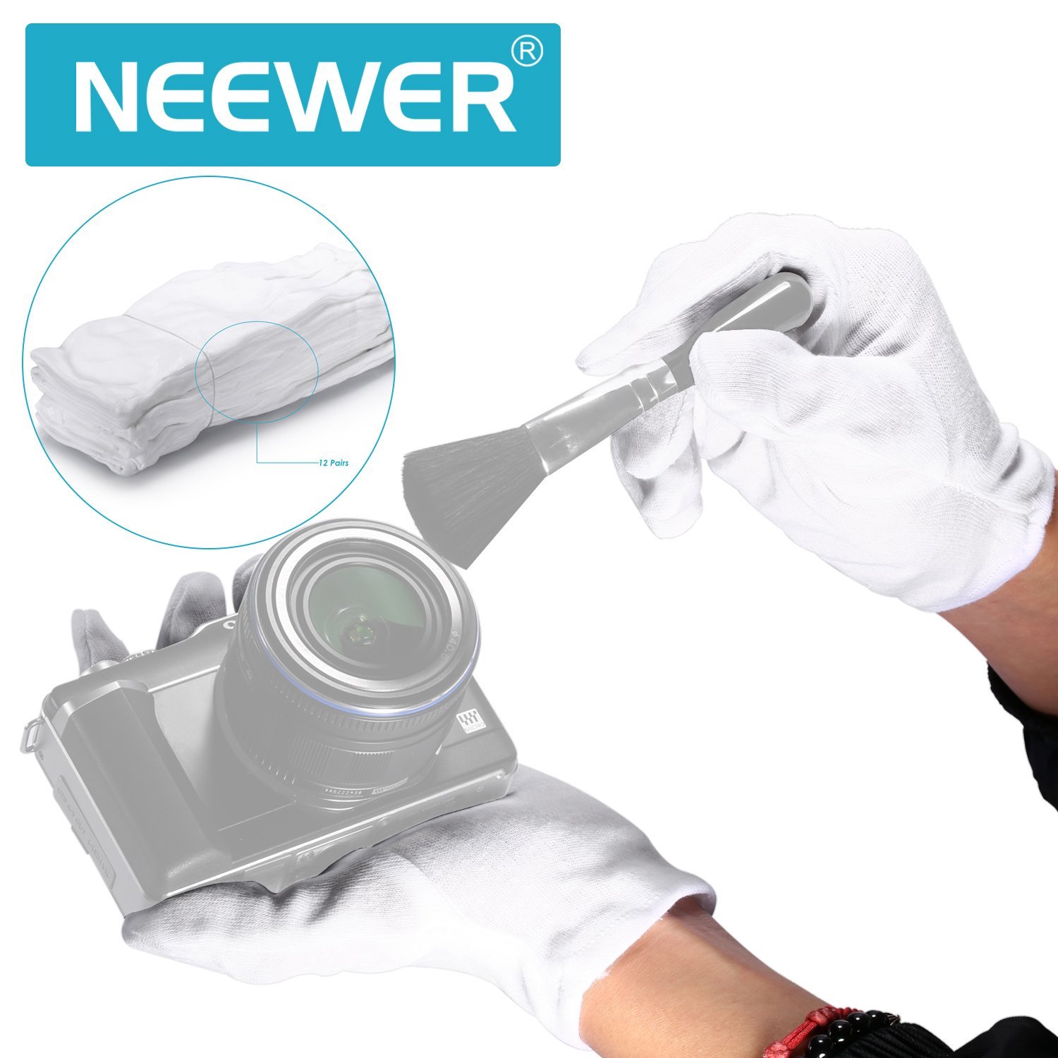 Neewer® 1,5 x 2 m150 cm x 200 cm fondale doppio Twist pop out mussola sfondo pannello con custodia da trasporto per studio fotografico video shooting (nerobianco)Neewer® 24 coppie (48 Guanti) 100% cotone Lisle Bianco Guanti da lavoro di ispezione per monete, gioielli, argento, o foto di ispezione