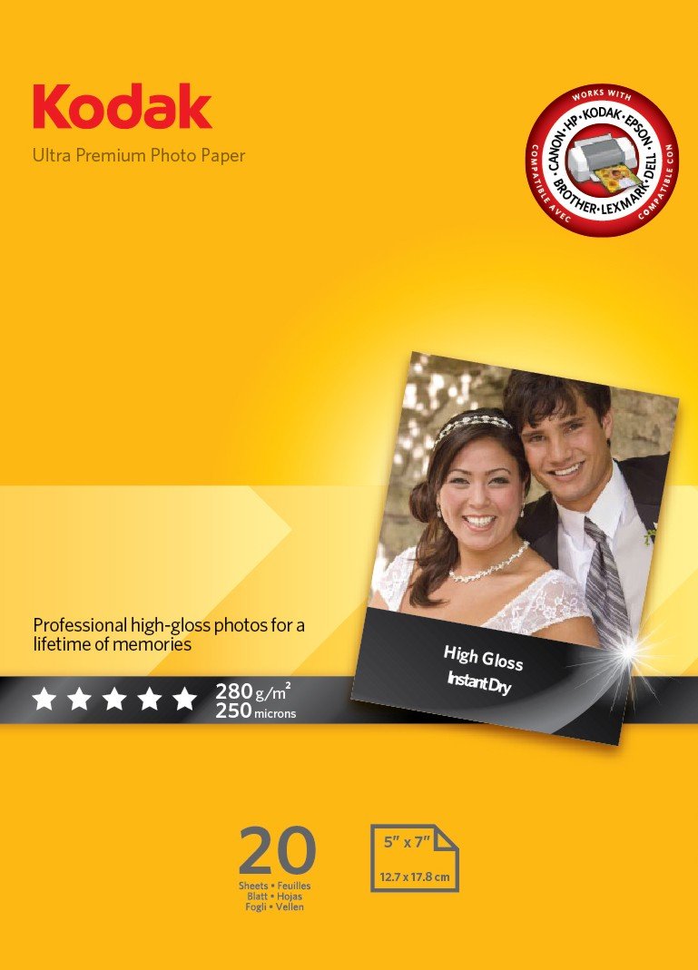 Kodak 5740-089 Ultra Premium Photo Paper, Carta Fotografica Gloss, 130x180 mm, 280 gm², 20 Fogli, Bianca descrizione